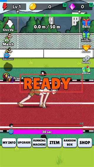3、等待【READY】提示结束后,进入赛跑场景,通过点击操作控制角色开始奔跑。