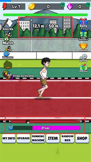 4、在限定时间(如30秒)内,持续点击屏幕让角色向终点(50m)前进,完成赛程挑战。