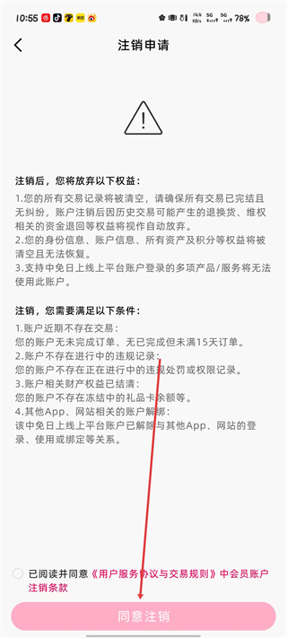 5、完成验证后,勾选已阅读协议后点击同意注销。