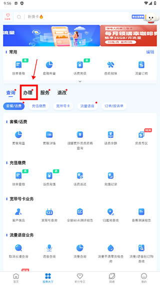 2、宽带办理:进入服务大厅选“宽带服务”
