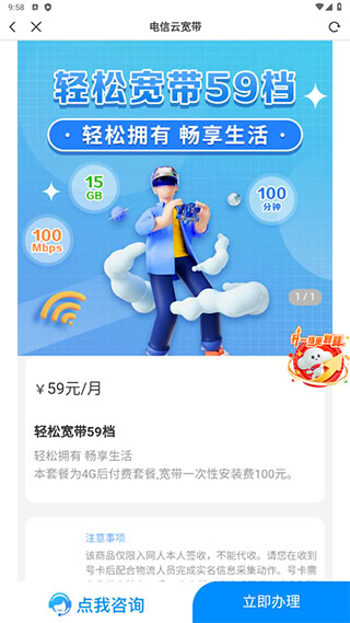 挑选套餐,遇问题咨询客服,确认无误点击办理