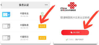 - 联通实名认证:点击【实名认证】,点击中国联通后的【去认证】,按提示完成人脸识别、电子签名。