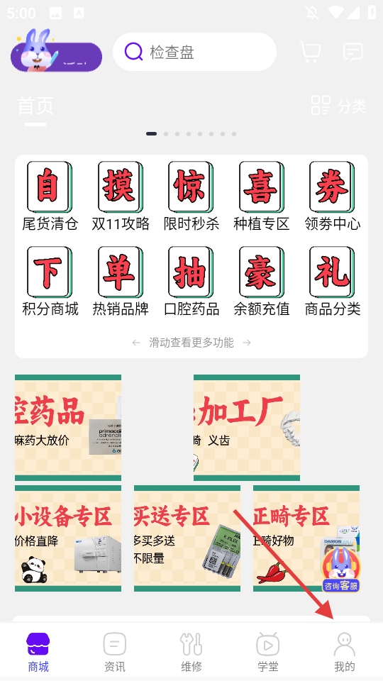 1、进入App首页,点顶部【专场活动】,查看口腔耗材等特惠活动。