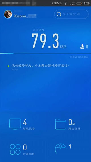 3、进入后可查看路由器的实时网速、接入的智能设备等信息。