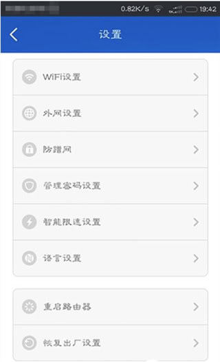 5、高级设置中,第一项可修改无线网密码,第二项可更改外网连接方式,第三项可设置防蹭网机制和勿扰模式,第四项可修改管理密码,第五项可对接入设备进行限速,第六项可更改语言。