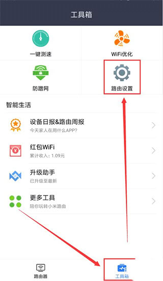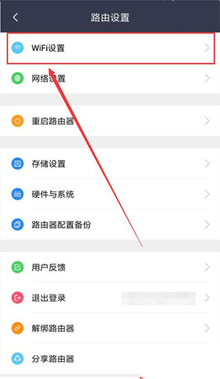 2、在“路由设置”页面中,点击“WiFi设置”,按页面提示操作,即可设置WiFi密码。