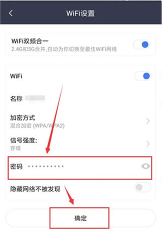 3、在“WiFi设置”页面中,找到“密码”选项,输入新密码,点击“确定”,即可完成WiFi密码的重新设置。