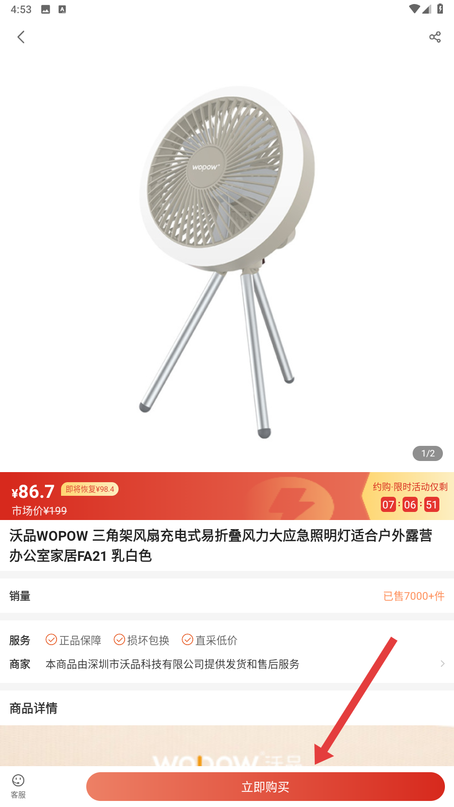 3、进入商品详情页后,点击【立即购买】,即可跳转至确认订单页面,离下单成功又近一步啦。