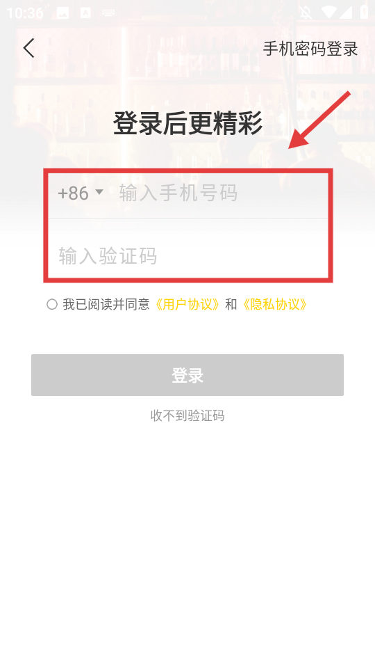 2、选择【手机号码登录】,进入手机号验证登录页面。