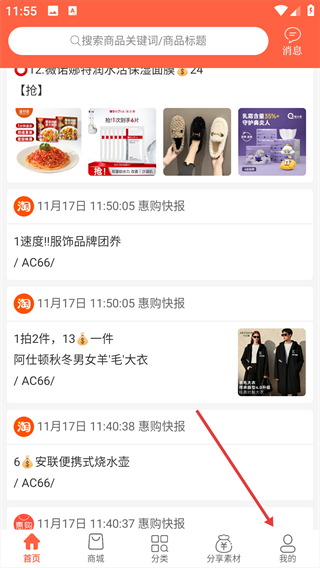 1、打开惠购网,点底部【分类】,进入超级分类页找商品。