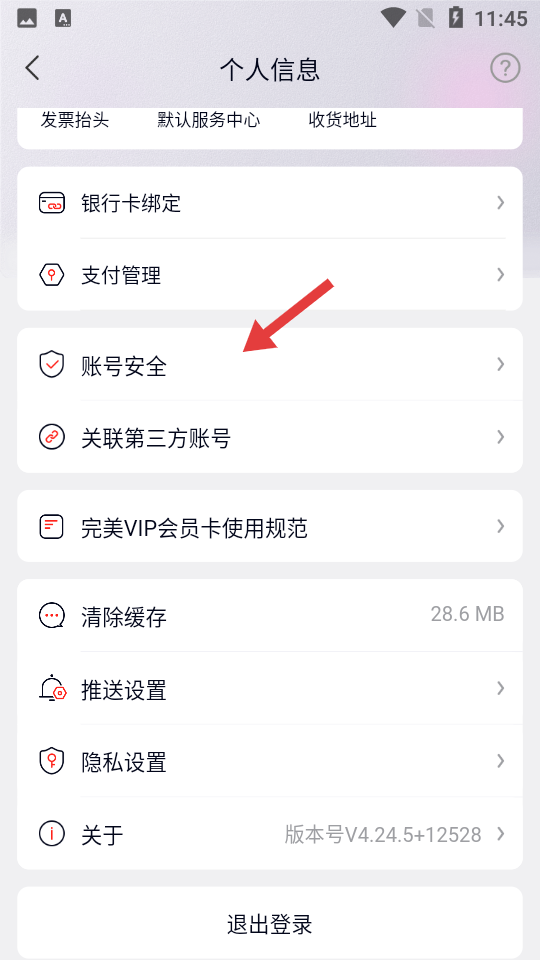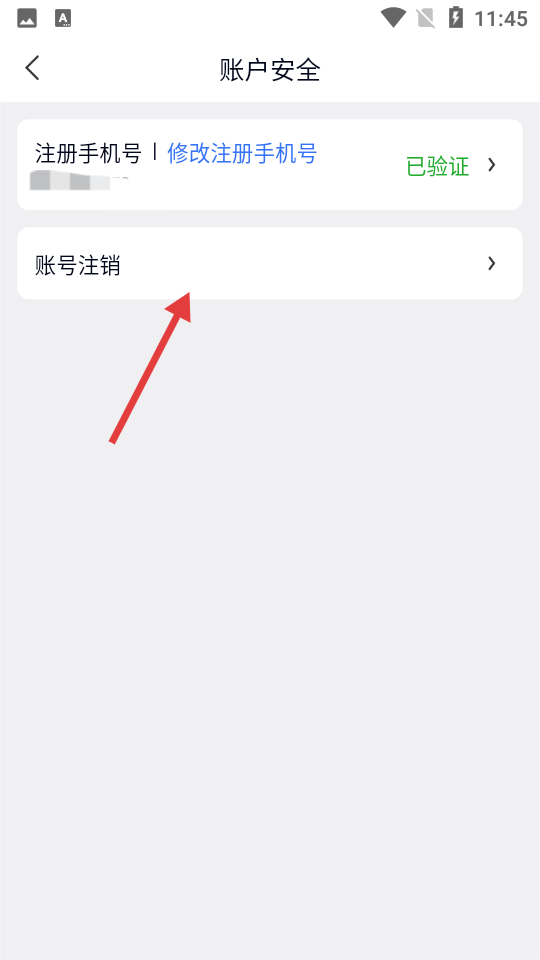 3、在账号安全页面点击【账号注销】,进入账号注销界面。