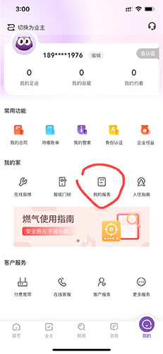 1、先点击右下角 “我的”,然后点 “我的服务” 选项。
