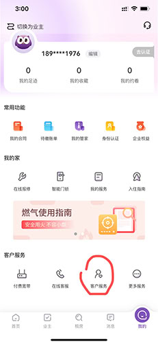 1、先点击右下角 “我的”,再点击 “客户服务” 入口。