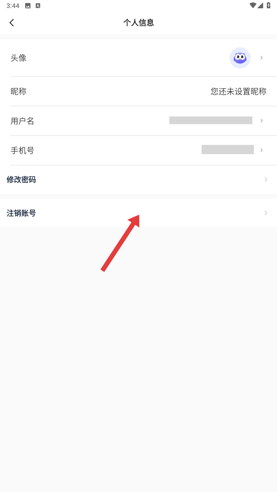 3、进入个人信息后,找到【注销账号】选项并点击,进入注销原因选择页面哦。
