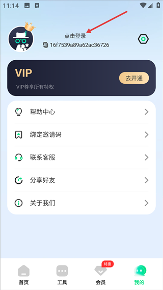 2、在“我的”页面,找到顶部的“点击登录”区域。