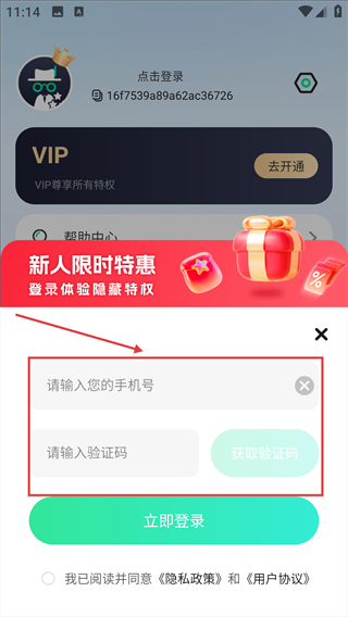 3、弹出登录窗口后,在依次填写手机号、验证码。