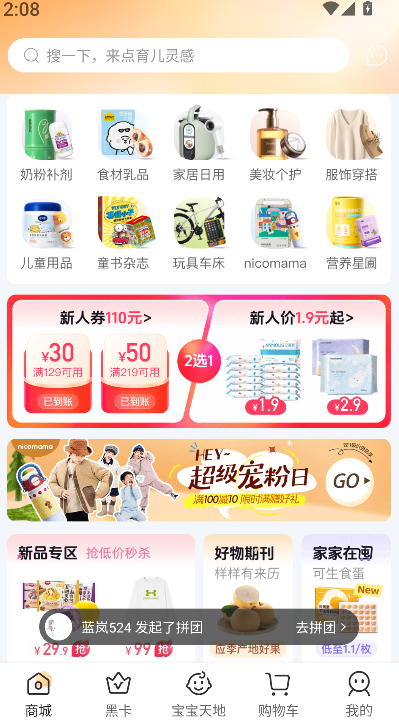 1、打开应用后进入商城页面,可浏览各类商品分类,按照需求筛选并查看感兴趣的育儿用品与母婴商品。
