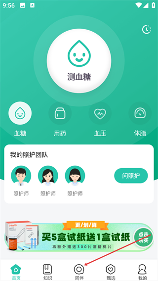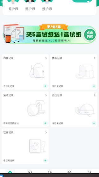 2、进入首页,可根据需要选择【血糖】【用药】【血压】【体脂】