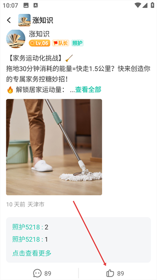 4、点击感兴趣的帖子下的点赞按钮,完成点赞操作。