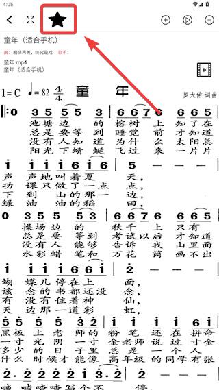4、点击【图片简谱】,以【童年】为例,点击“星号”还能将简谱收藏