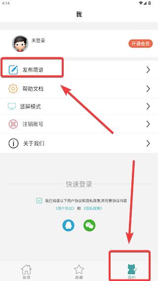 5、支持发布自己制作的简谱,点击右下角【我的】,点击【发布简谱】