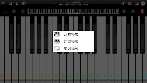 5、点击右上角的“钢琴”符号,可选择弹奏模式