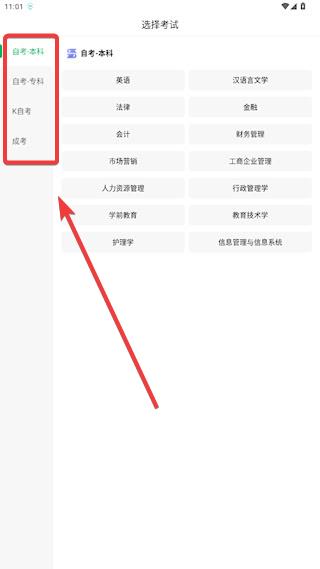 1、选择考试【本科】【专科】【K自考】【成考】,以会计为例