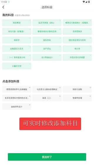4、进入首页,点击右上角,可随时修改、添加科目