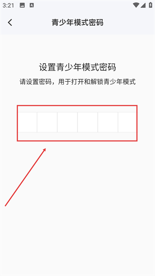 4、进入【青少年模式密码】设置页面,填写六位数密码,完成模式设置。