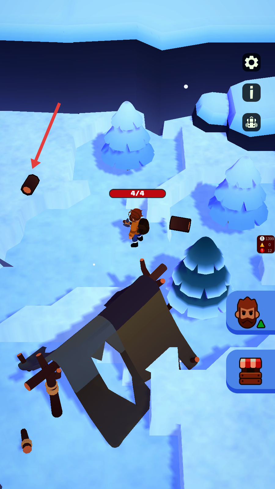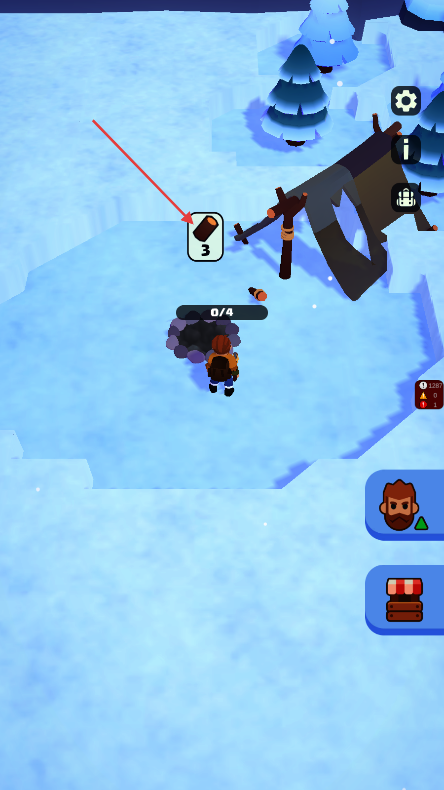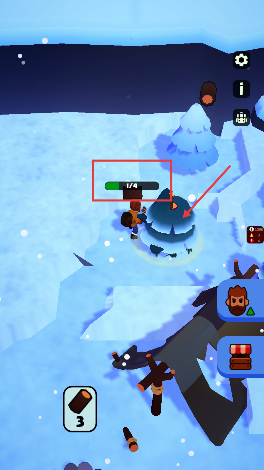 2、砍伐树木,获取更多木材,进度条显示收集情况。