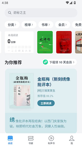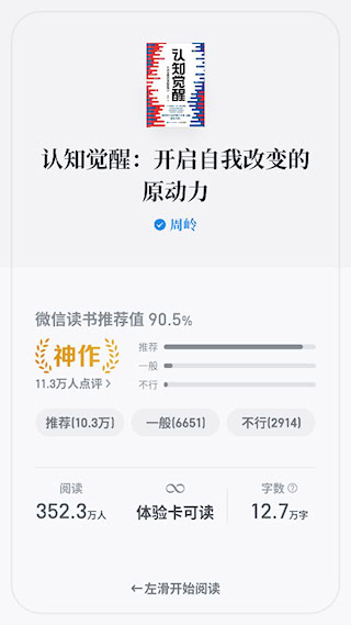 5、个性推荐:借助大数据算法,微信读书依据你的阅读偏好,量身定制个性化书单,涵盖言情、悬疑、人文社科等各类题材,助你找到心仪好书。