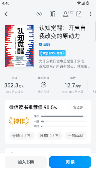 3、点击《认知觉醒》,可查看书籍相关介绍、评论