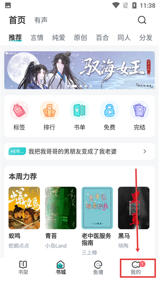1、在书城首页,点击底部【我的】按钮,可进入个人中心页面。