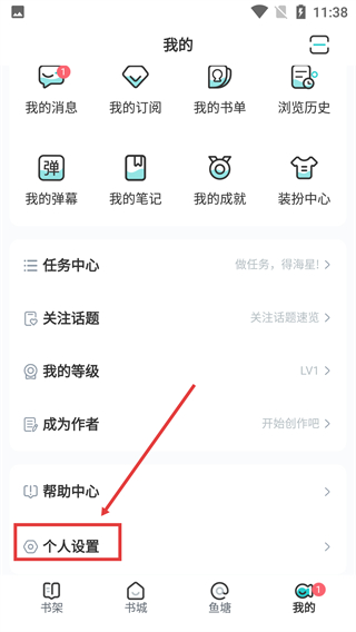 2、进入【我的】页面后,点击【个人设置】选项,可进入设置页面。