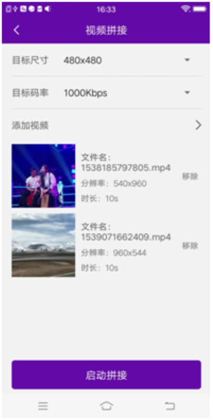 2、添加想要合成的视频,点击启动拼接即可拼接视频。