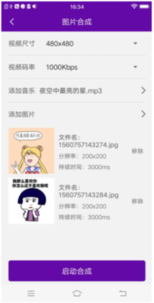 3、选择音乐,点击启动合成即可合成新的视频。