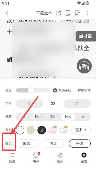 3、找到【翻页】,有【覆盖】【仿真】【平滑】三种模式,选好继续阅读即可