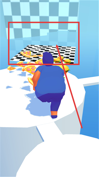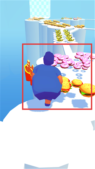 2、触发机制后角色会变大,此时操控角色收集路上的食物,像甜甜圈、汉堡这类,能积累闯关进度啦。