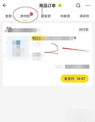 2、在商品订单页面,查找标记为“待付款”的订单。