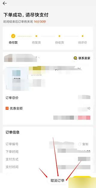 3、点击进入该订单详情页,点右下角“取消订单”按钮。