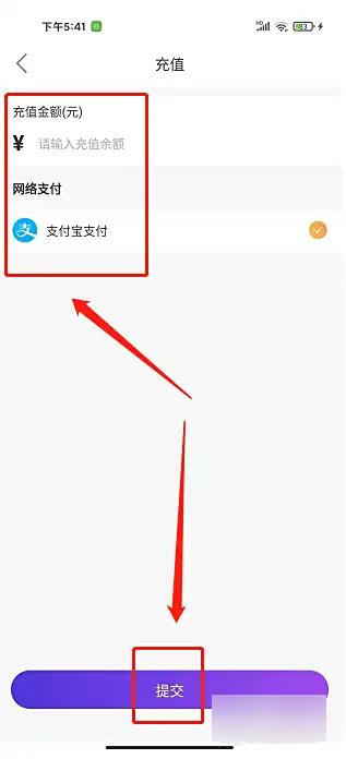 2、输入想要充值的金额,选择网络支付方式,最后点击【提交】按钮即可完成操作。
