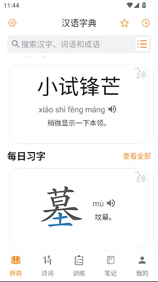 汉语字典APP集权威性与智能化于一体,收录了《新华字典》《现代汉语词典》等官方版权内容,具备独创多维查词矩阵:除拼音、部首、笔画等传统检索,更支持手写输入、摄像头OCR取字、语音搜索。满足从小学生识字到专业文献研究的全场景需求。有需要的小伙伴可以点击下载。