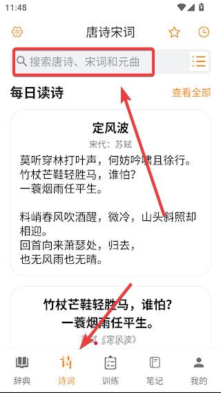 3、【诗词】模块,支持搜索唐诗、宋词、元曲