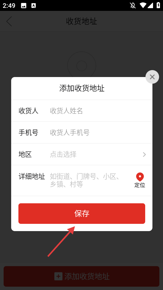 3、点击底部【添加收货地址】按钮,开始录入地址信息。