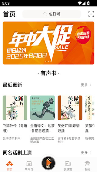2、提供细校电子书籍与精品漫画,支持边听边看,全方位融入武侠场景。