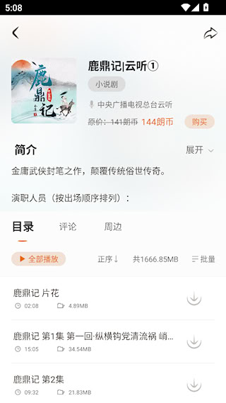 7、具备免费试听、单集兑换下载、音频书签、后台播放、定时关闭等功能。