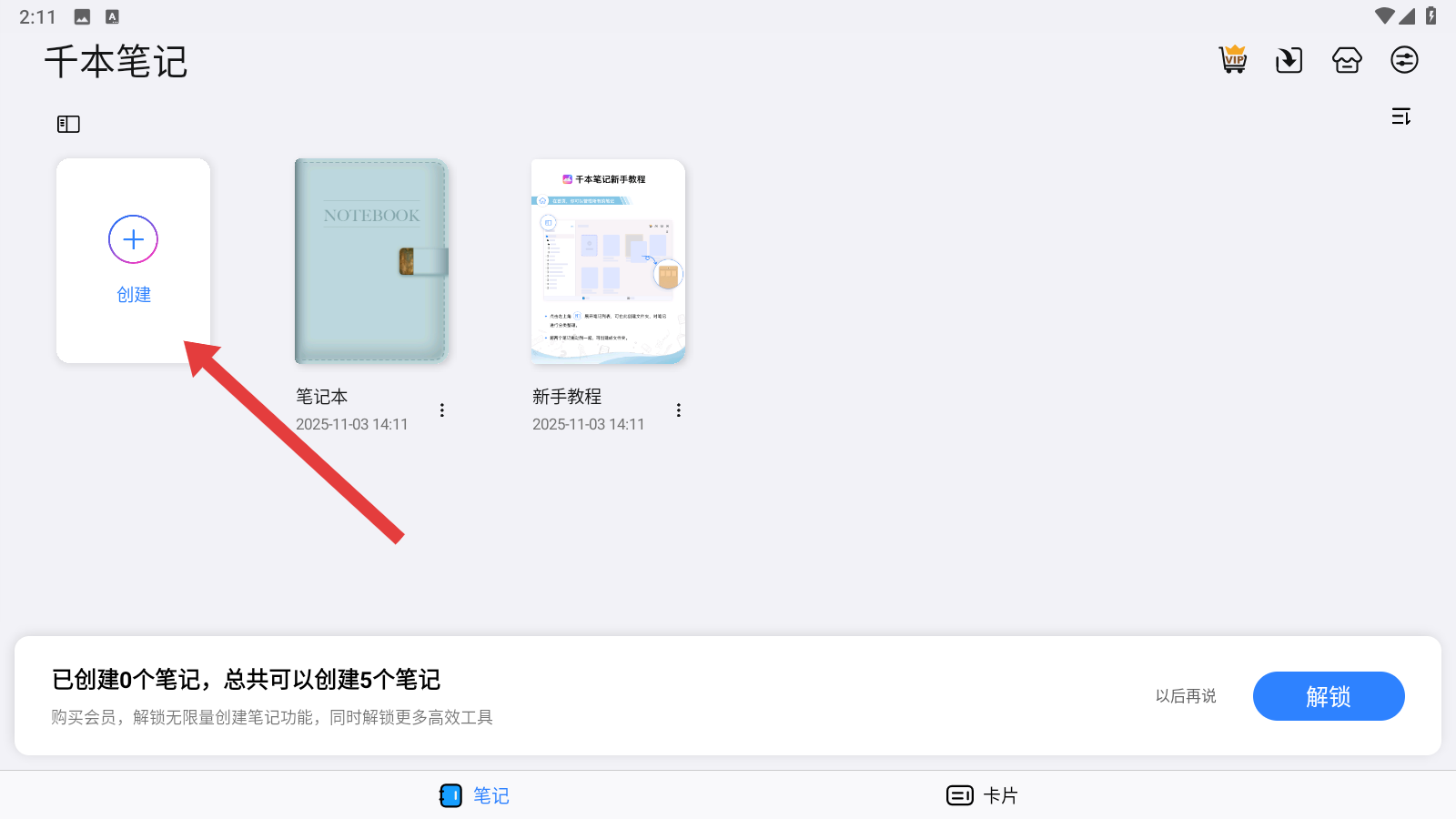 1、我们可以点击【创建】按钮,进入笔记本封面选择界面,开始制作专属笔记啦。