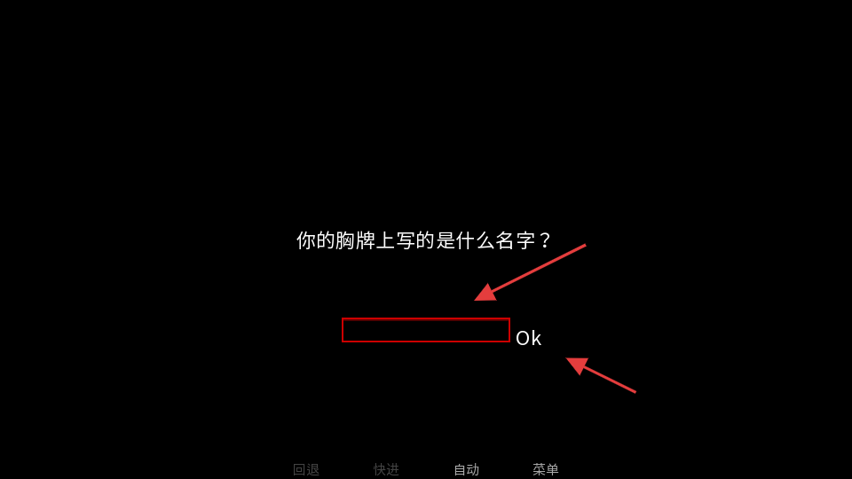 2、输入胸牌名字,点Ok,确定身份推进剧情~