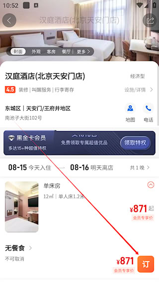 5、找到心仪的酒店后,进入详情页点击“订”。