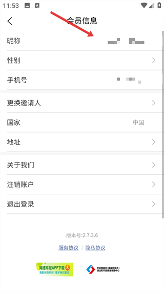 3、在会员信息页面,点击【昵称】选项,进入昵称修改页面。